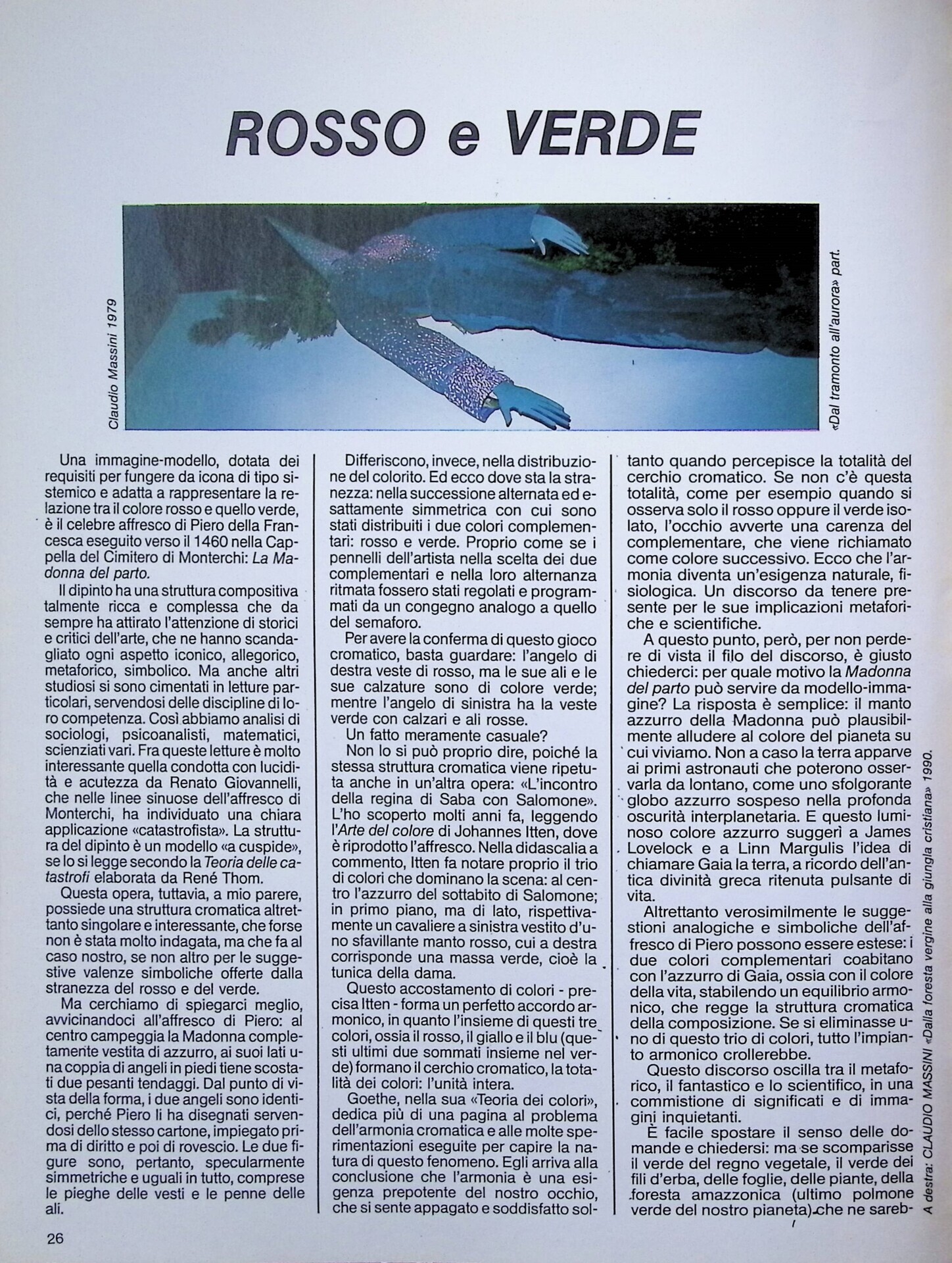 | Descrizione | Articolo sul rapporto tra natura e colore, illustrato con la riproduzione dell’opera Dalla foresta vergine alla giungla cristiana (1990) di Claudio Massini. |