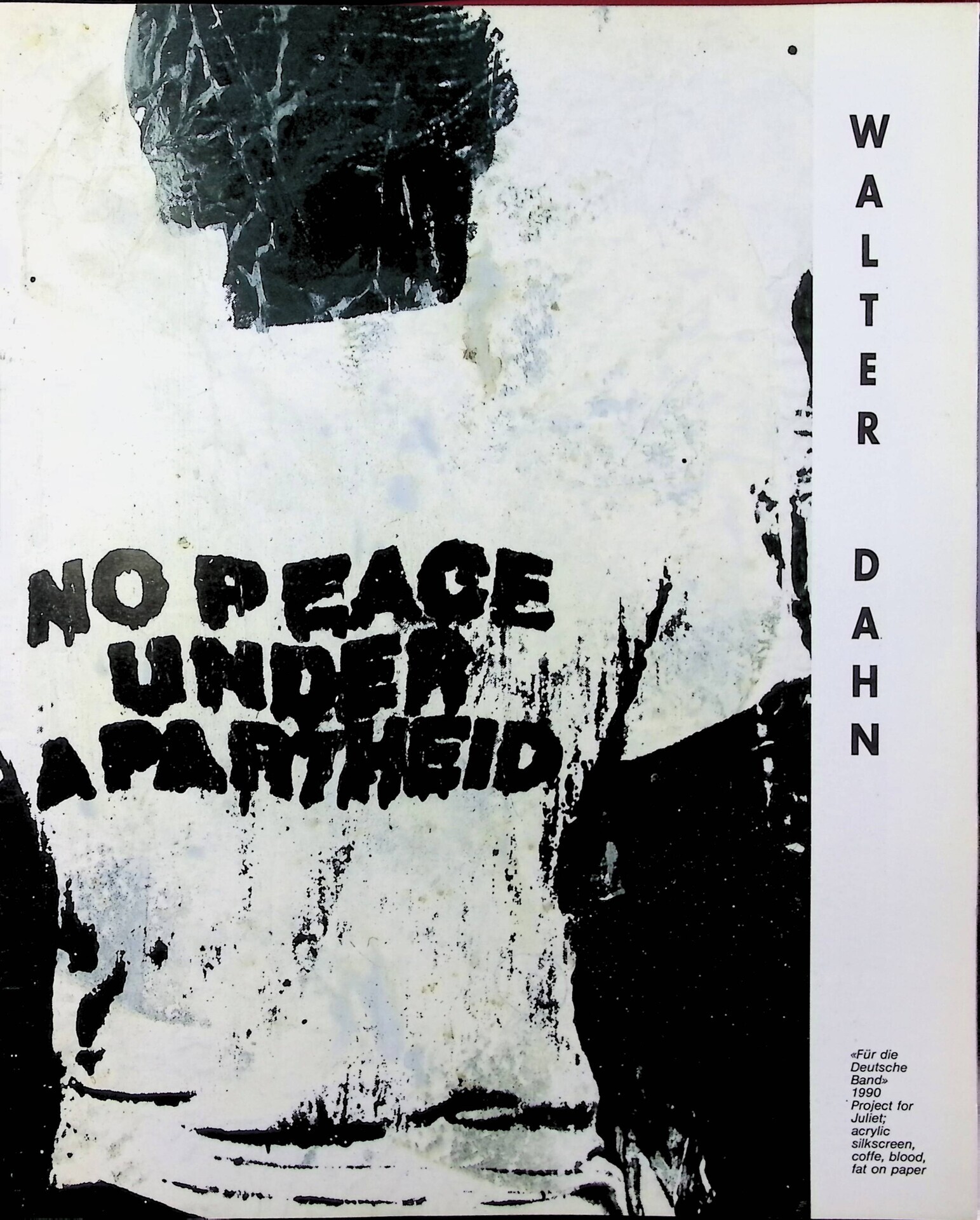 | Descrizione | Segnalazione del progetto grafico di Walter Dahn per Juliet, in cui compare la frase "No Peace Under Apartheid". |