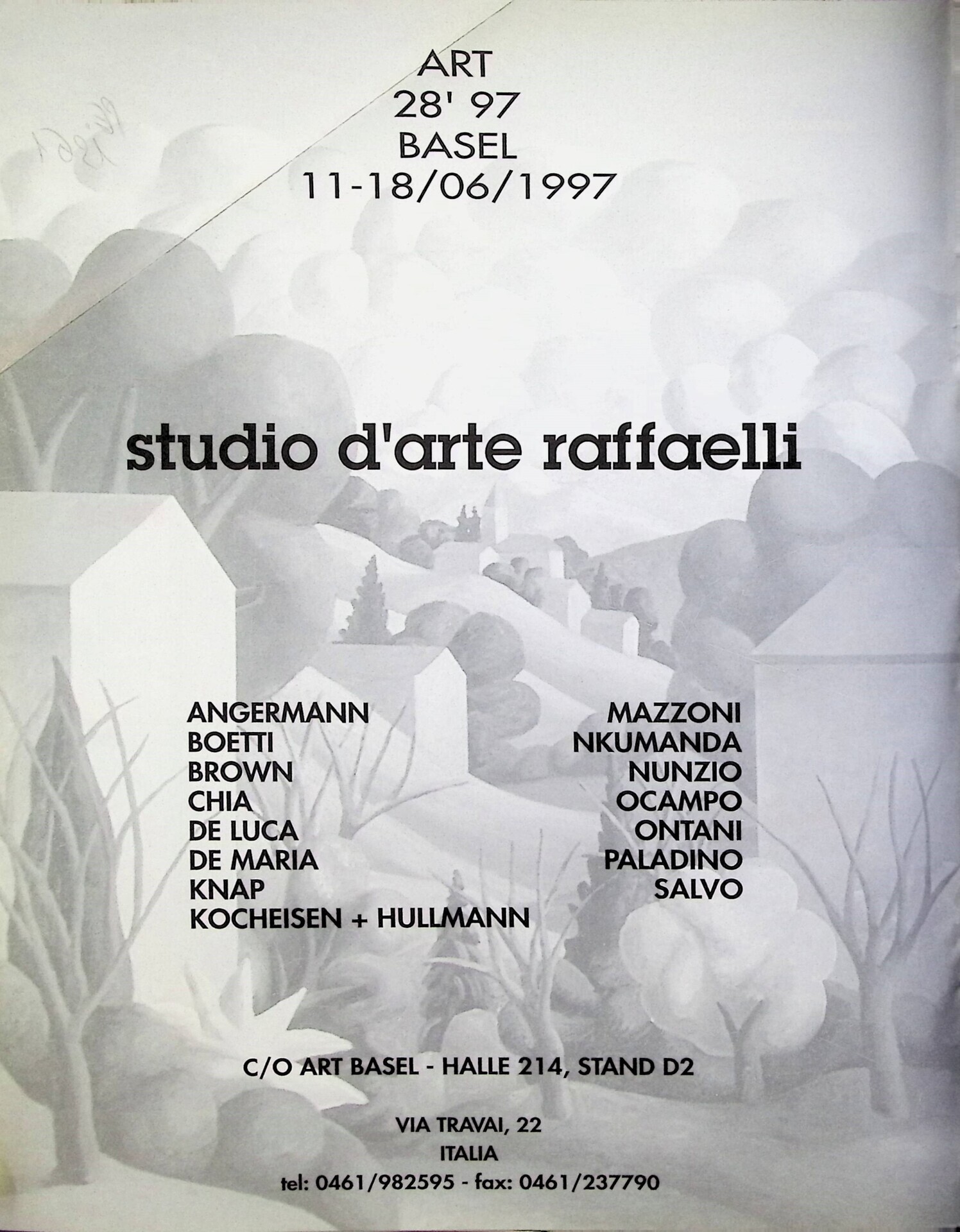 | Descrizione | Pubblicità della mostra allo stand ad Art Basel di Studio d'Arte Raffaelli, con opere, tra gli altri, di Manuel Ocampo [filippino], |