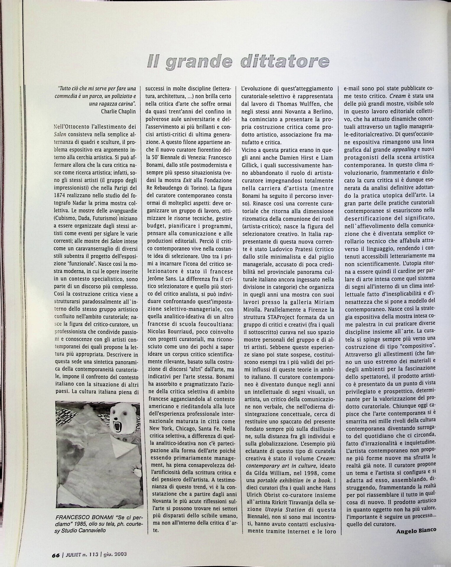 Angelo Bianco, Il grande dittatore, «Juliet», n. 113, giugno 2003, p. 66