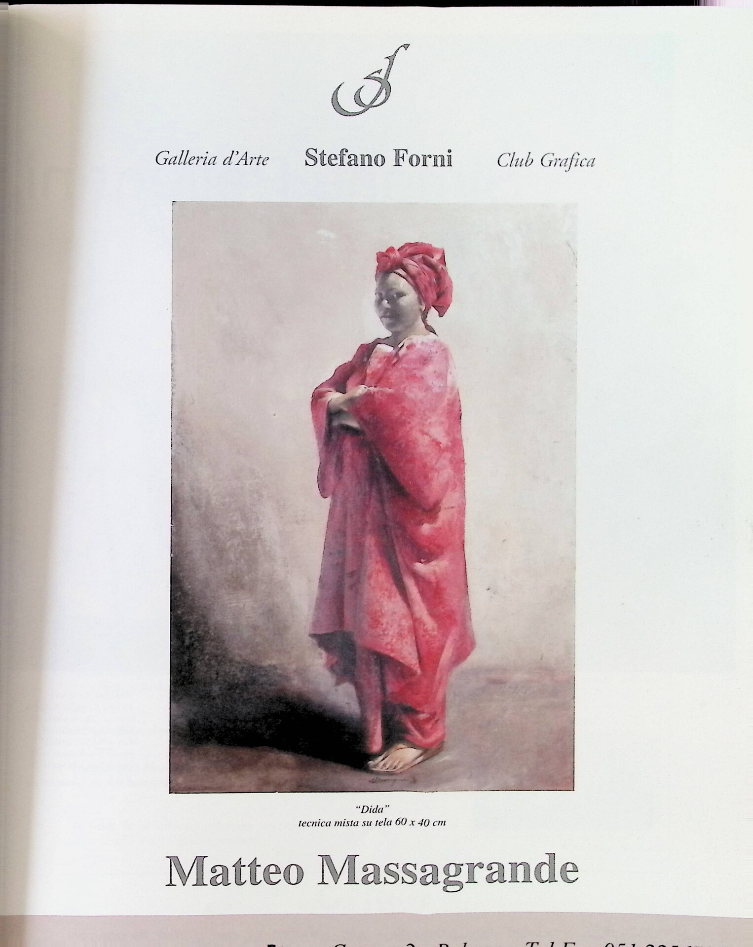 | Descrizione | Pubblicità della personale di Matteo Massagrande alla Galleria d'Arte Stefano Forni. Nell’opera illustrata compare una donna afrodiscendente in abiti tradizionali. |